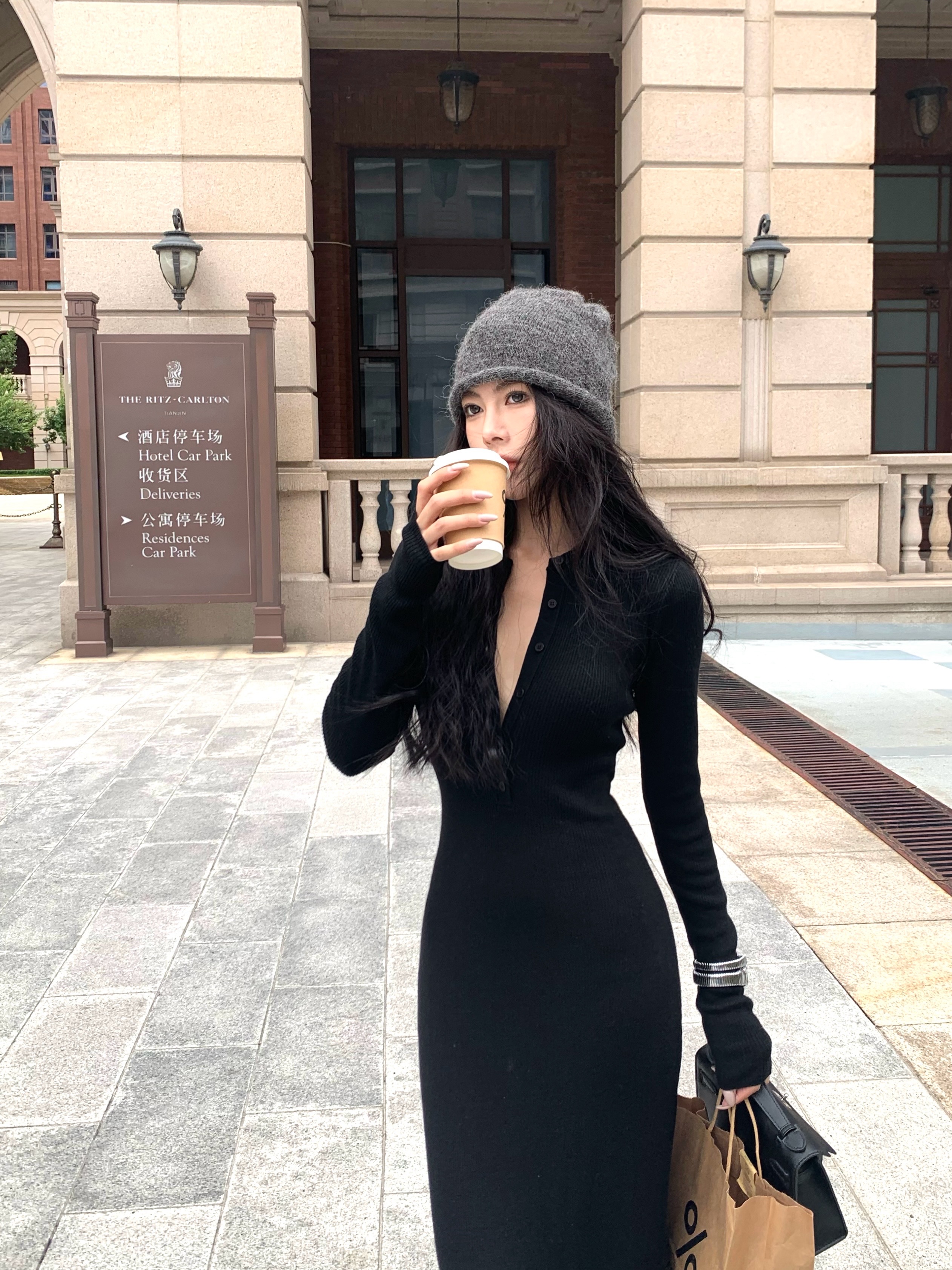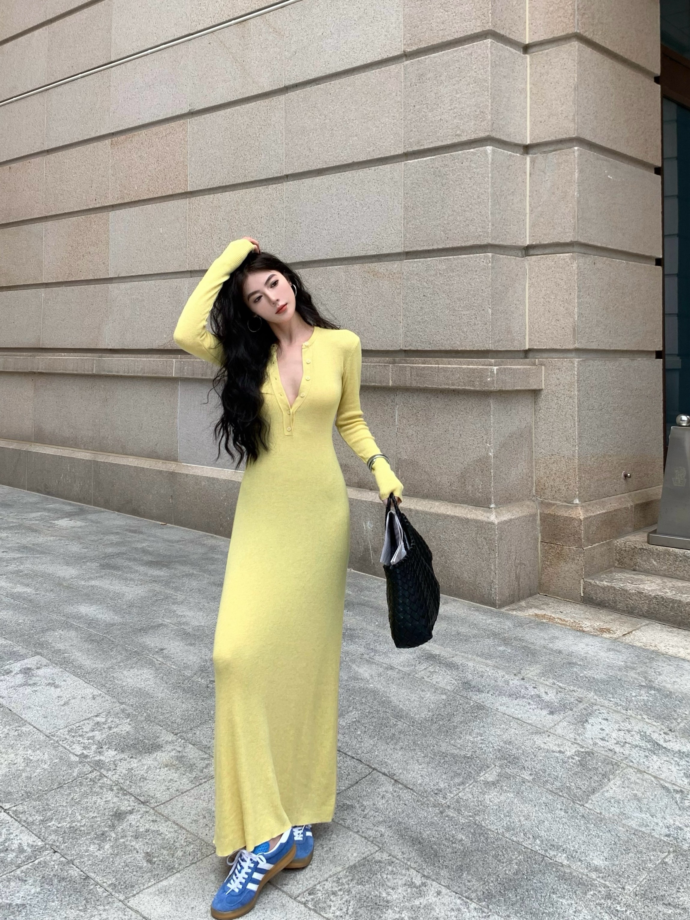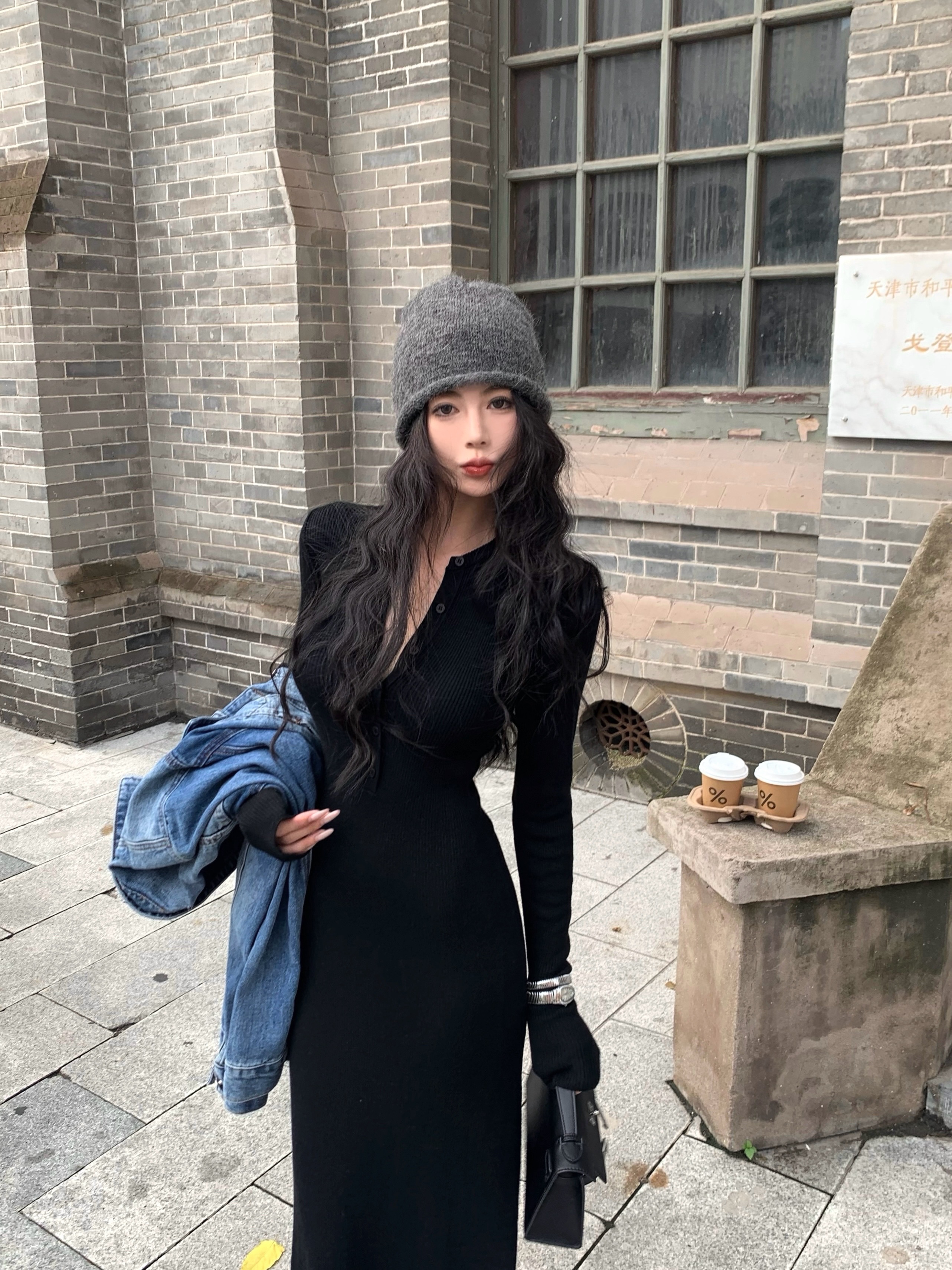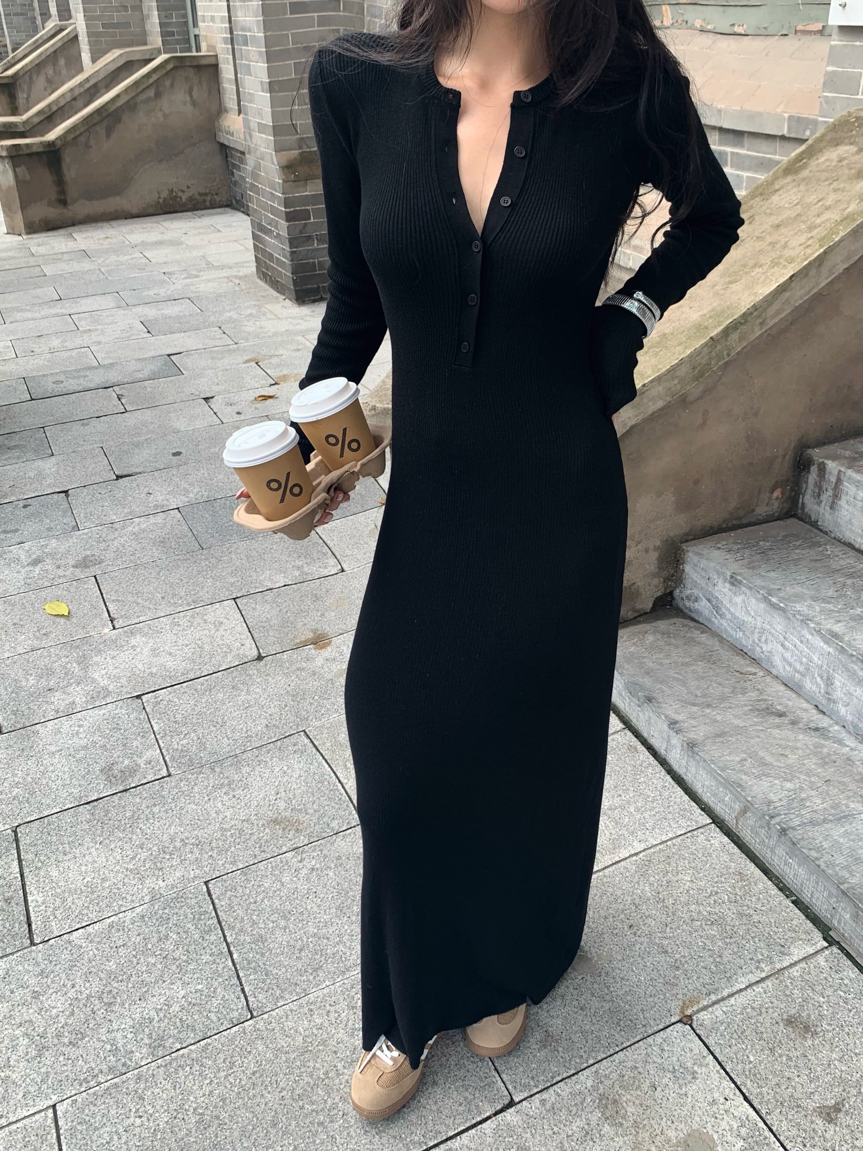 Step into sophistication with this gray knit long sleeve maxi dress. Crafted with a soft, stretchy ribbed fabric, it hugs your curves in all the right places while maintaining a sleek, refined silhouette. The half-open neckline adds a subtle touch of allure, perfectly balancing elegance and sensuality. Whether for casual outings, date nights, or evening events, this dress embodies Korean-inspired “pure desire” minimalism with timeless charm.