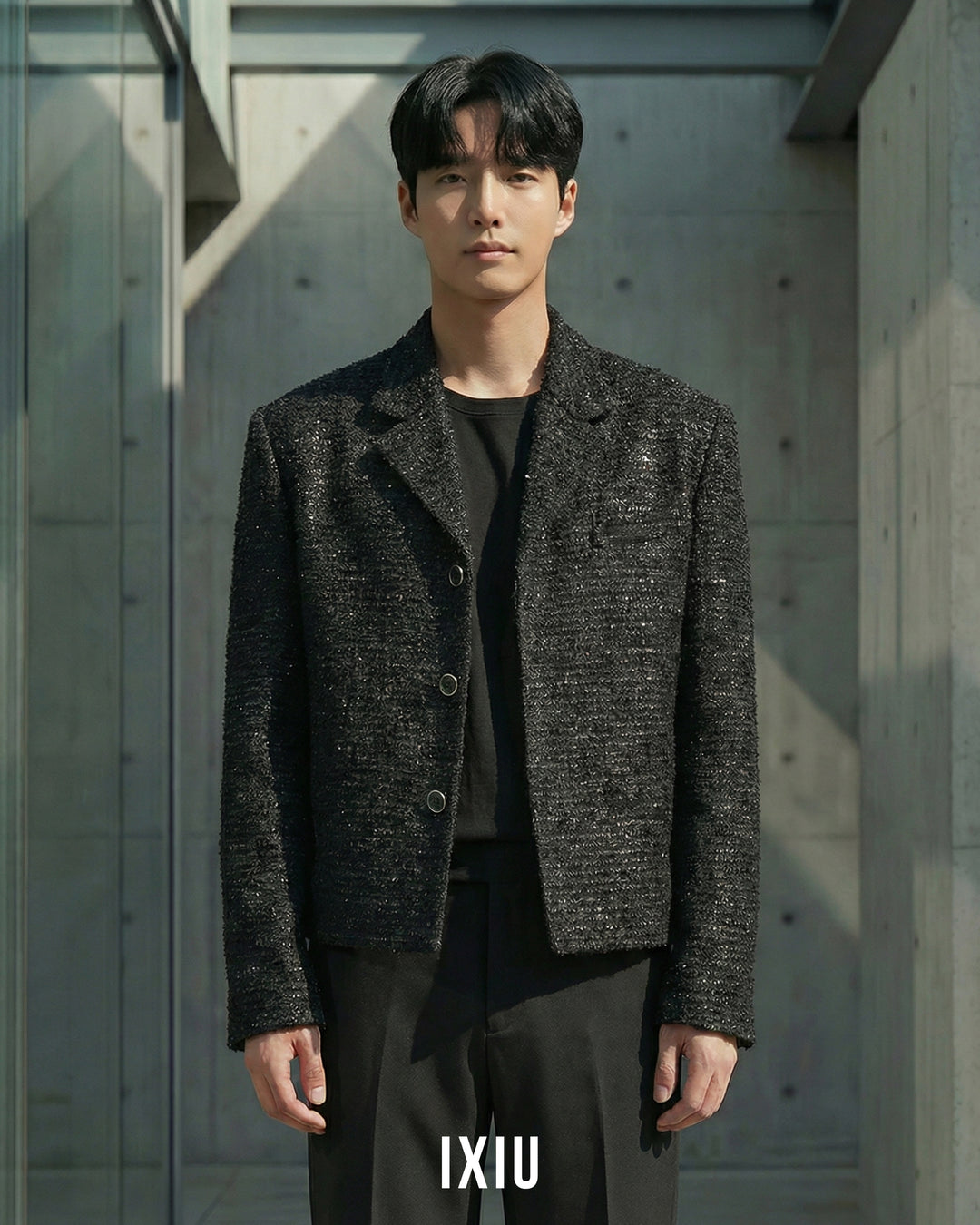 【至高の品格】モダンツイード・ノーカラーブルゾン(韓国ミニマル)