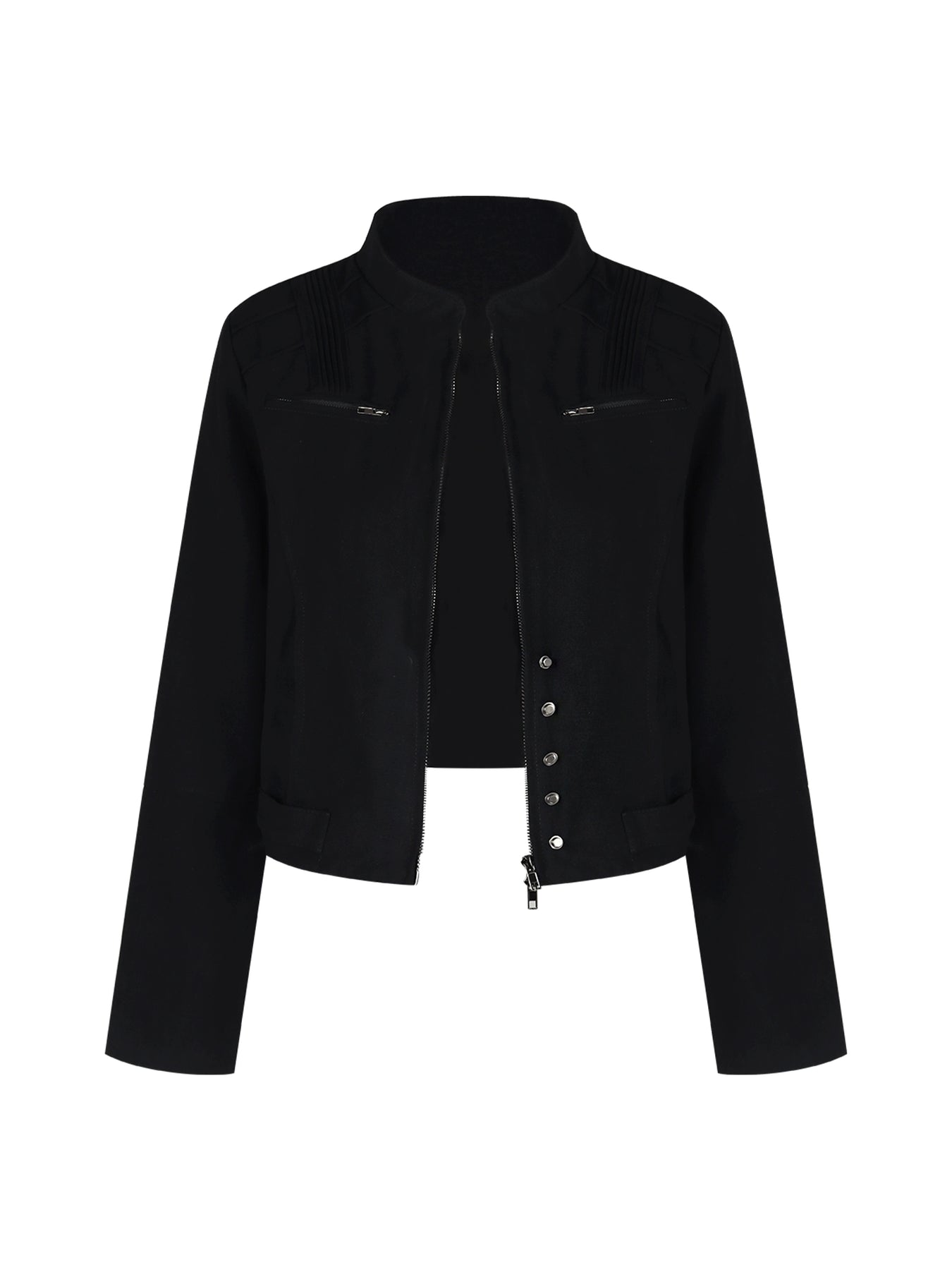 Black Strawberry Double-Zip Short Jacket – Stand Collar Cropped Outerwear (Available in 2 Colors)