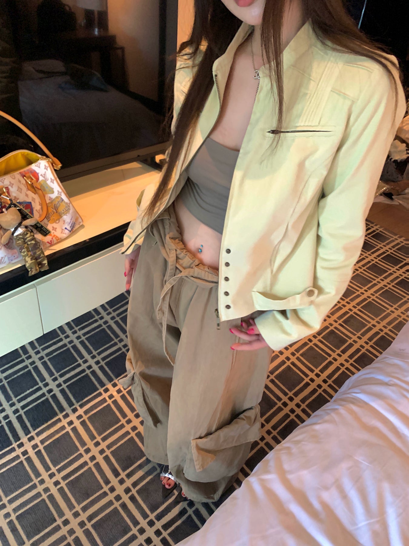 • L: Length 54 cm | Bust 105 cm | Waist 96 cm | Shoulder 41.5 cm | Hem 108 cm | Sleeve 66 cm