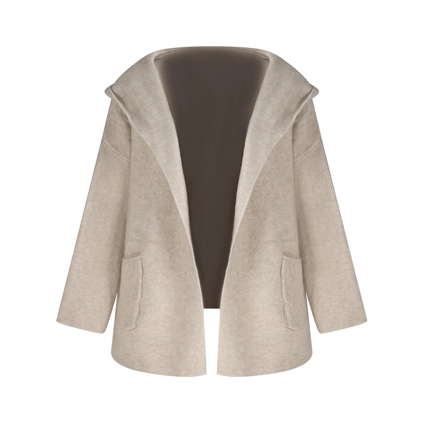 Apricot Hooded Knit Cardigan Set – Soft Loose-Fit Three-Piece Outfit (Available in 4 Colors)