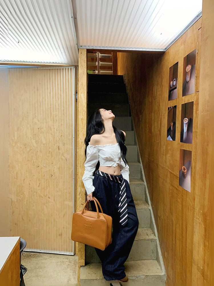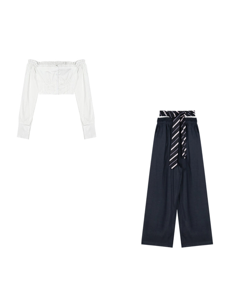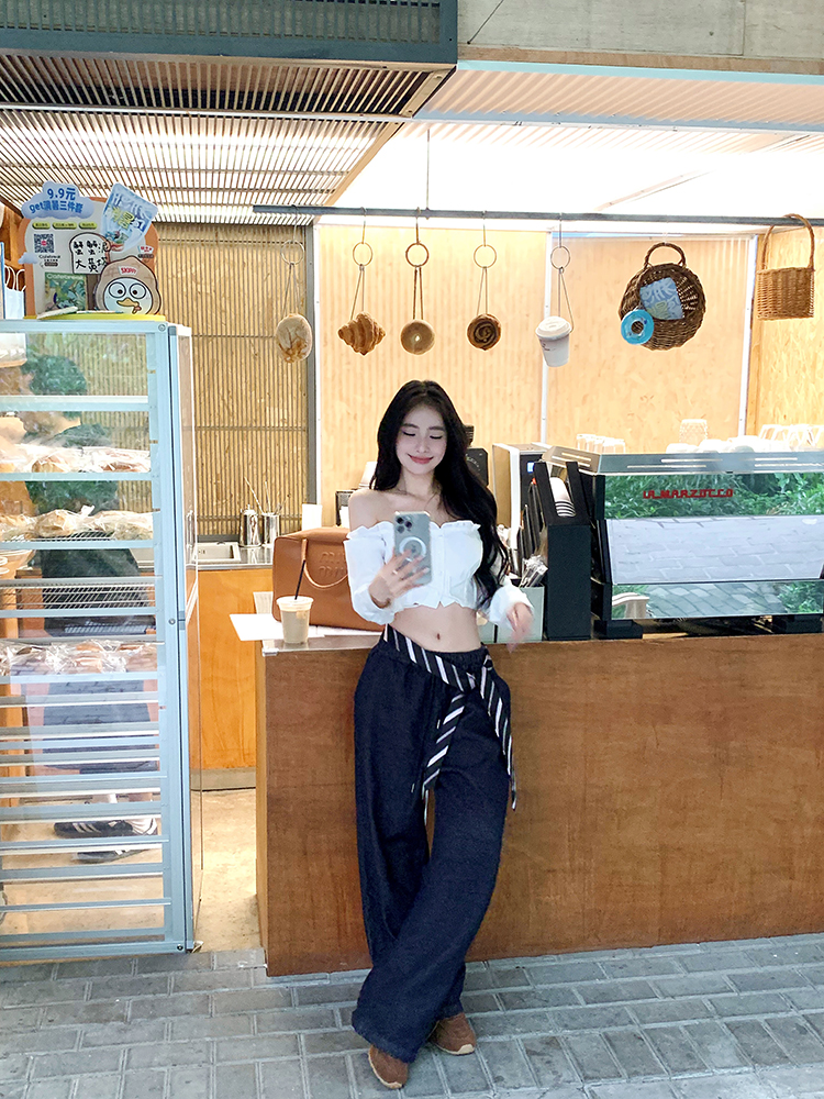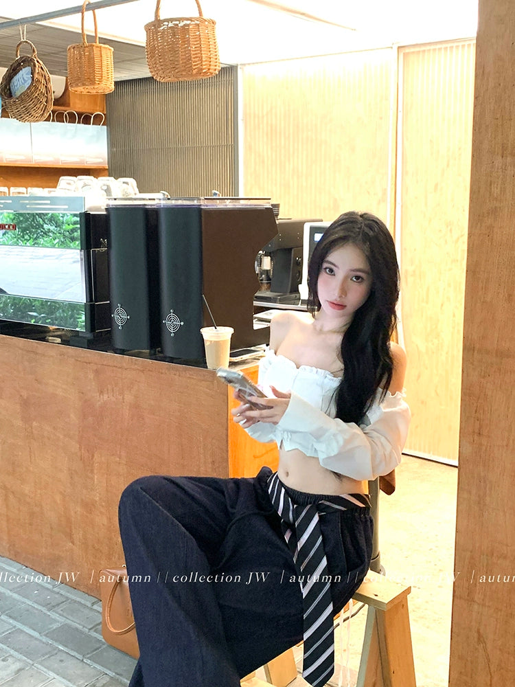 This off-shoulder long sleeve blouse is designed to highlight your neckline and silhouette with a sophisticated, pure-sexy balance. The fitted cut and cropped length flatter your waist, while the smooth cotton-blend fabric keeps it comfortable yet structured. Perfect for pairing with high-waisted pants or skirts, it’s your go-to piece for a polished Korean-inspired feminine look that’s both elegant and effortlessly confident.