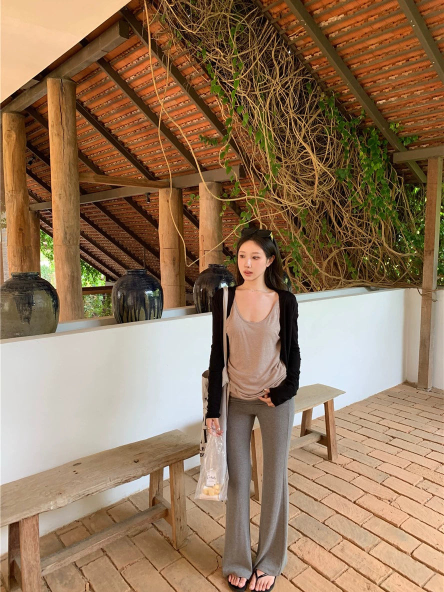 This loose-fit knit cardigan is the perfect lightweight layer for early autumn or cool summer evenings. The airy, semi-sheer fabric offers just the right amount of sun protection while keeping you comfortable. With its relaxed silhouette and cropped cut, it pairs beautifully with tanks, camis, or dresses for that casual K-fashion “lazy chic” vibe. Soft, versatile, and ideal for layering across all seasons.