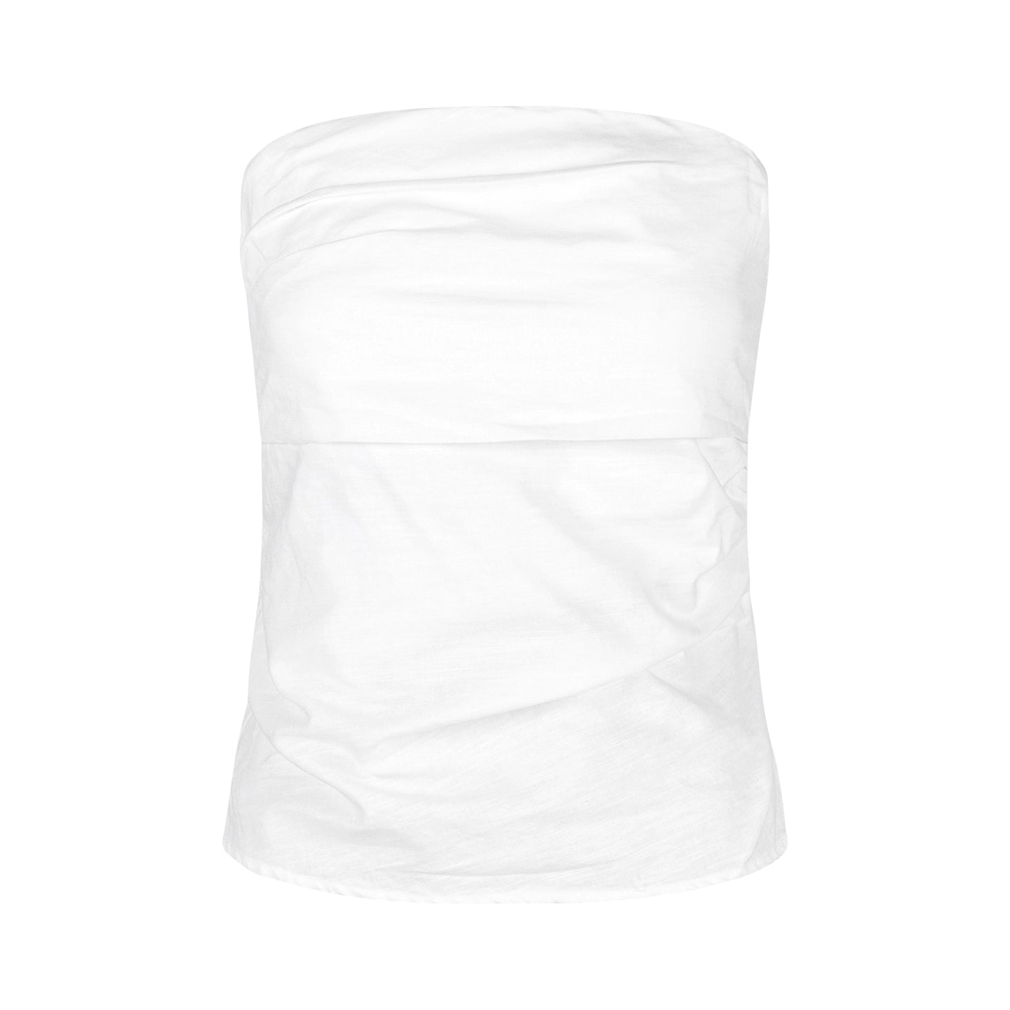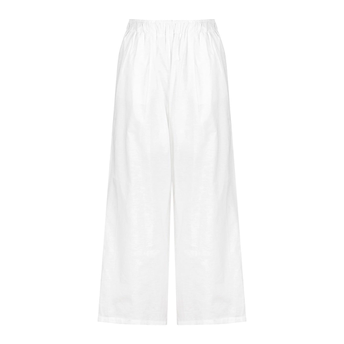 White Linen Strapless Crop Top & Wide-Leg Pants Set – Elegant Summer Two-Piece Outfit (Available in 2 Colors)