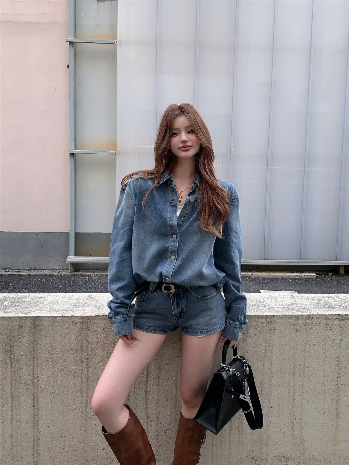 This vintage-inspired blue denim two-piece set blends a relaxed Hong Kong street style with a modern, confident attitude. The loose-fit denim jacket pairs perfectly with straight-cut shorts, creating a timeless yet trendy silhouette. Crafted from soft, durable denim with subtle fading, it’s ideal for autumn layering — whether styled with a crop top for casual days or boots for a city-chic edge. Designed for women who love comfort and individuality.